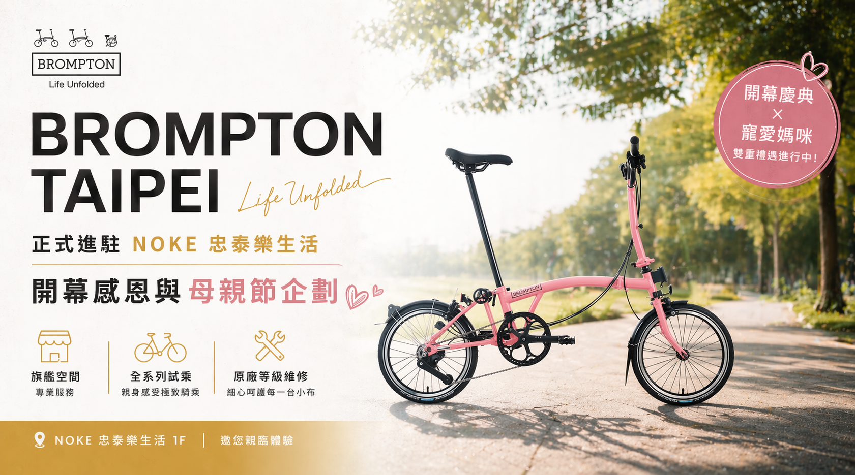 BROMPTON TAIPEI 正式進駐 NOKE 忠泰樂生活開幕感恩與母親節企劃